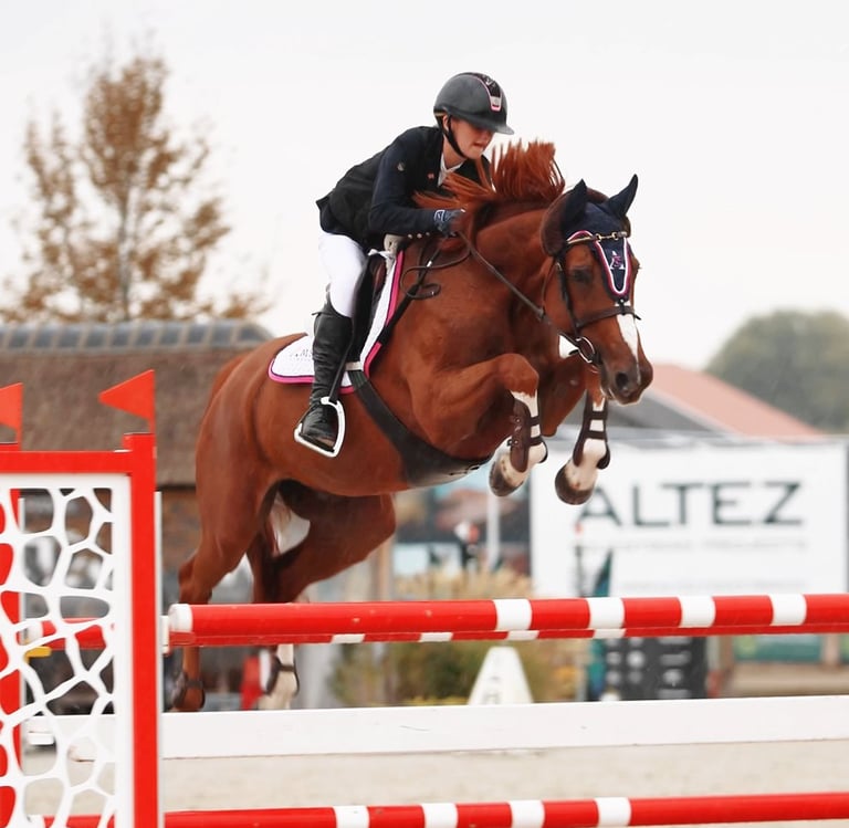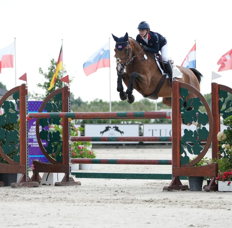 Kitty has proudly represented Great Britain on two occasions at Children-on-Horse Nations Cups. Her dedication, talent, professionalism and passion for the sport shine through in everything she does. Kitty plays an integral role within our team, supporting the daily exercise and specialises in further producing the horses while ensuring they are kept happy and in top condition. Her feel, consistency and genuine care for the horses make her invaluable to their ongoing well-being and performance.